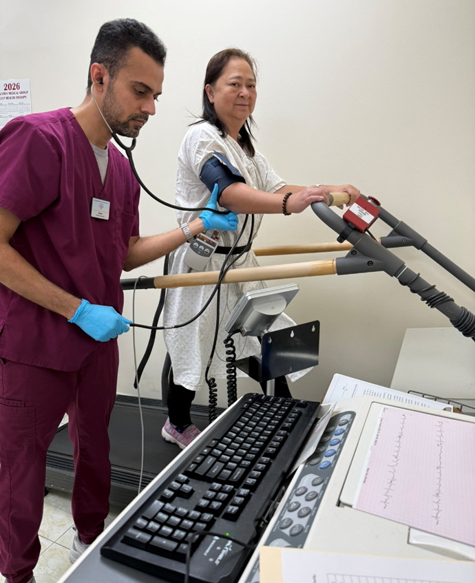 Our medical team closely monitors patients during treadmill stress testing to ensure safety and accuracy.