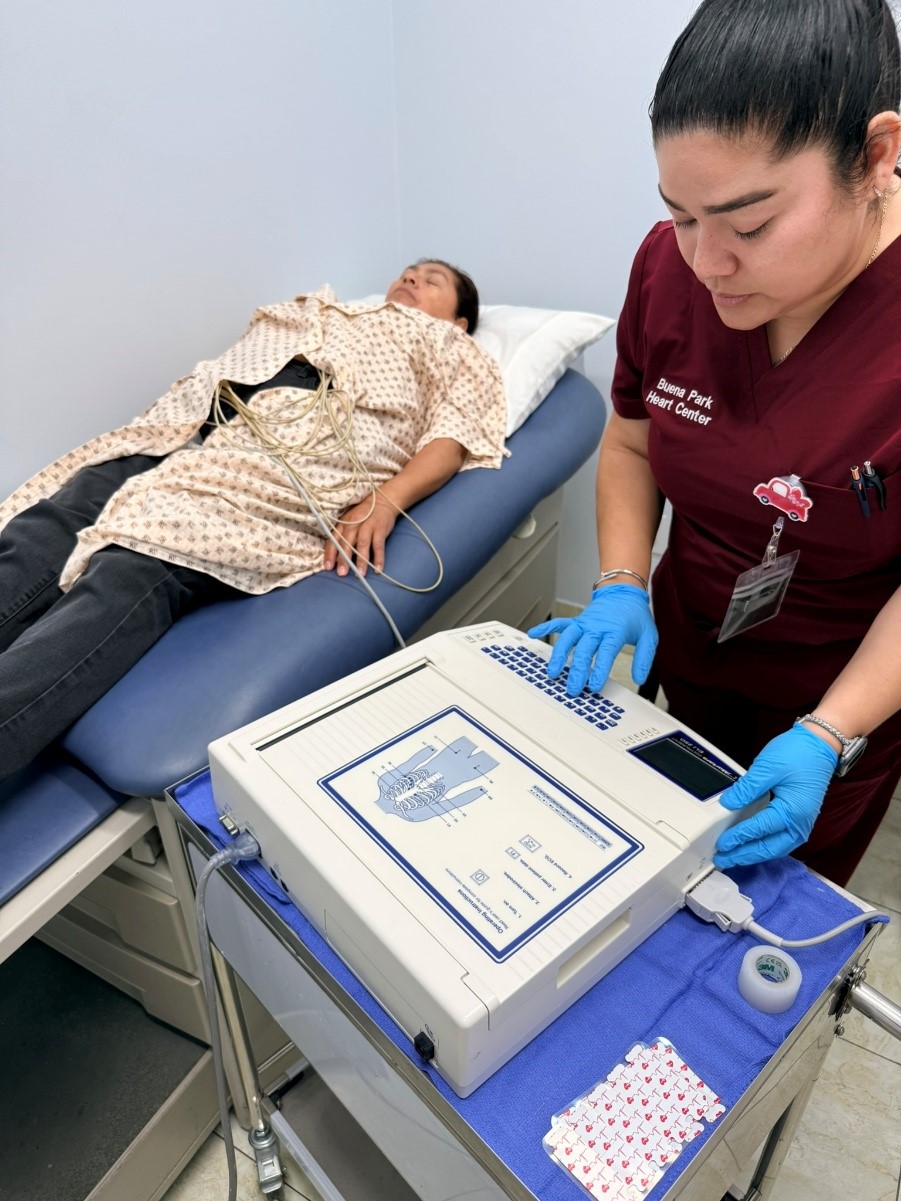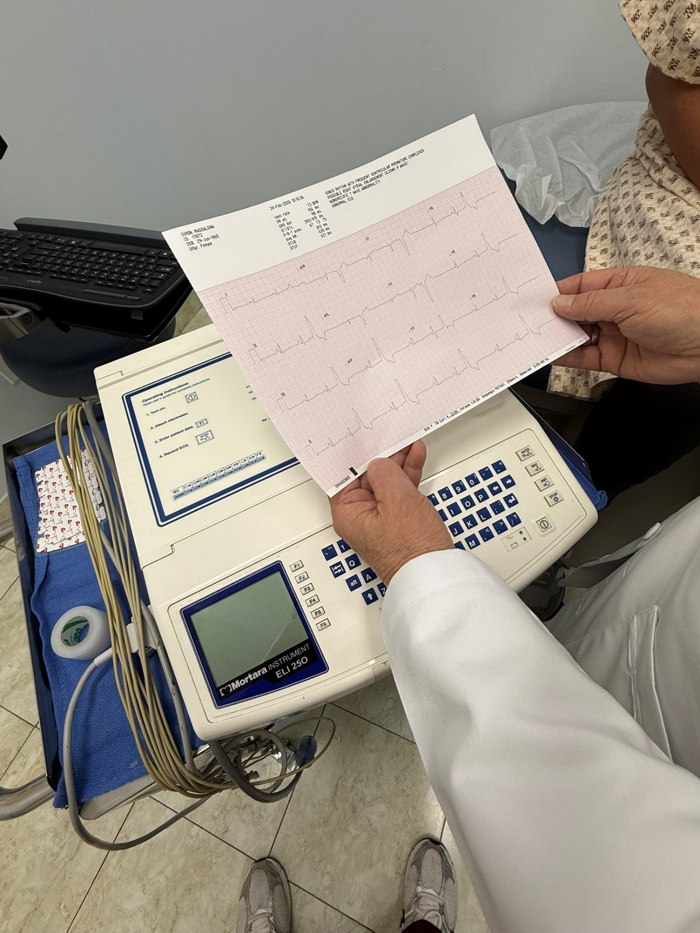 Example of an ECG tracing showing the heart’s rhythm and electrical pattern.
